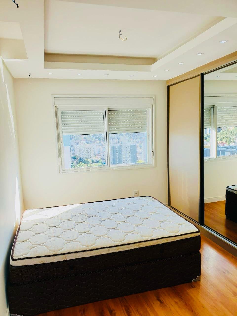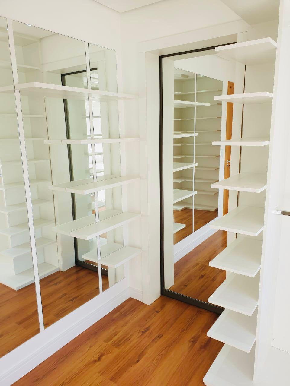 Cortinas do living motorizadas. Passagem da suíte para o closet pelo espelho duplo(porta) da suíte.