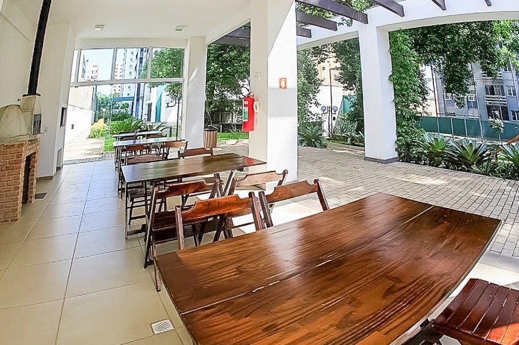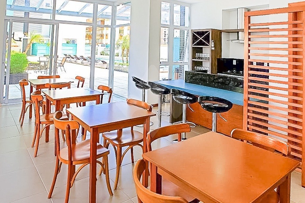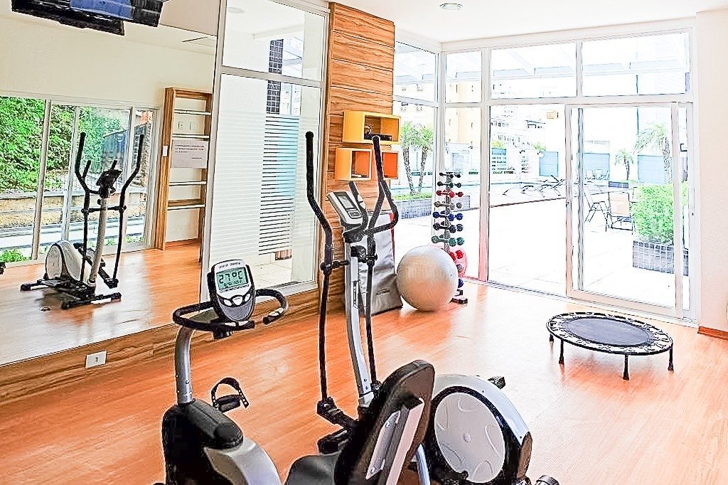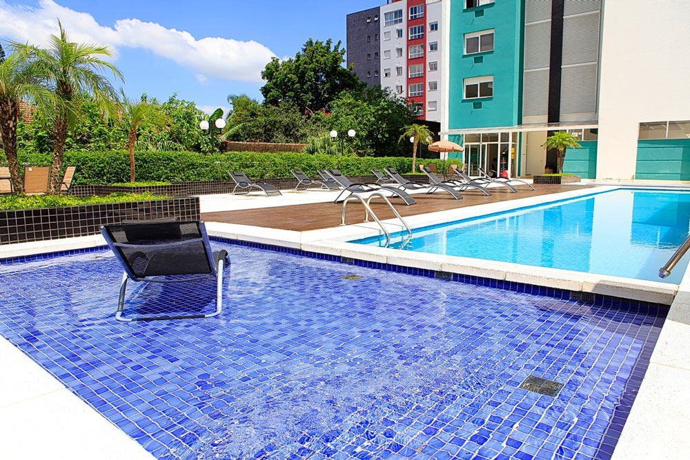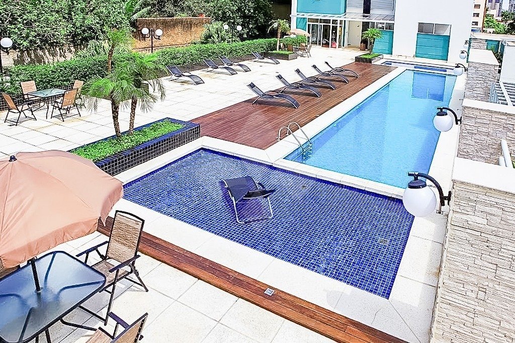 piscina adulto, duas piscinas infantil, salão de festas amplo, espaço gourmet em frente à piscina, 2 elevadores, quadra poliesportiva, playground, quiosque com churrasqueira e forno de pizza, espaço fitness e portaria 24 horas. Próximo ao Shopping Iguatemi e Shopping Bourbon Country e Wallig